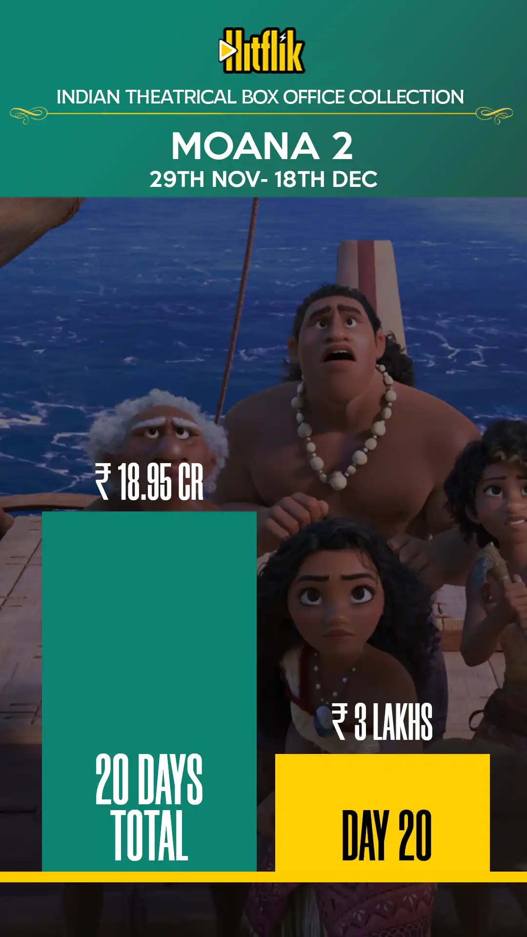 With a total collection of ₹18.95 Cr in 19 days, Moana 2 has performed decently for an English-language animated film in India. The movie is expected to maintain a presence in select cinemas for another week but will likely see a decline as newer releases dominate screens.
